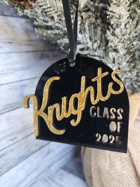 Custom Class of 2025 Graduation Ornament – Personalized School Ornament for UCF, UF, FSU, and More – Glitter Acrylic Keepsake