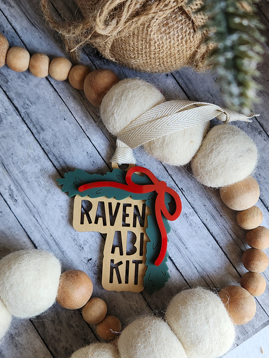 Personalized Stacked Name Ornament – Custom Family Ornament with Bow and Greenery