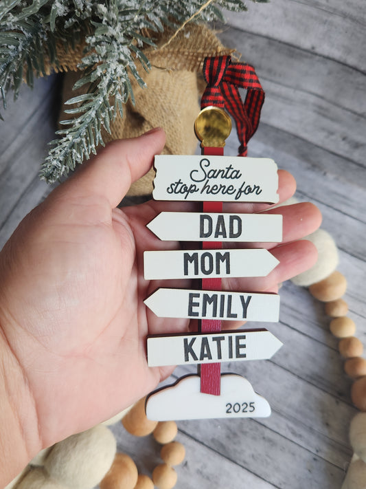 Personalized Santa Stop Here Family Ornament – Custom Christmas Sign with Names & Year