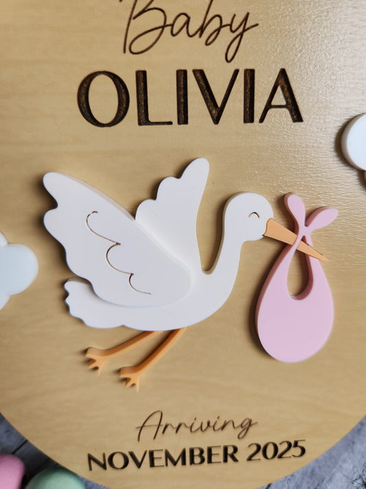 Personalized Baby Announcement Sign – Custom Stork Sign with Name & Arrival Date