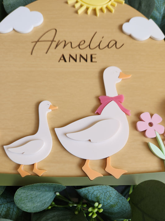 Personalized Goose Nursery Sign – Custom Baby Name Plaque with Bow Color