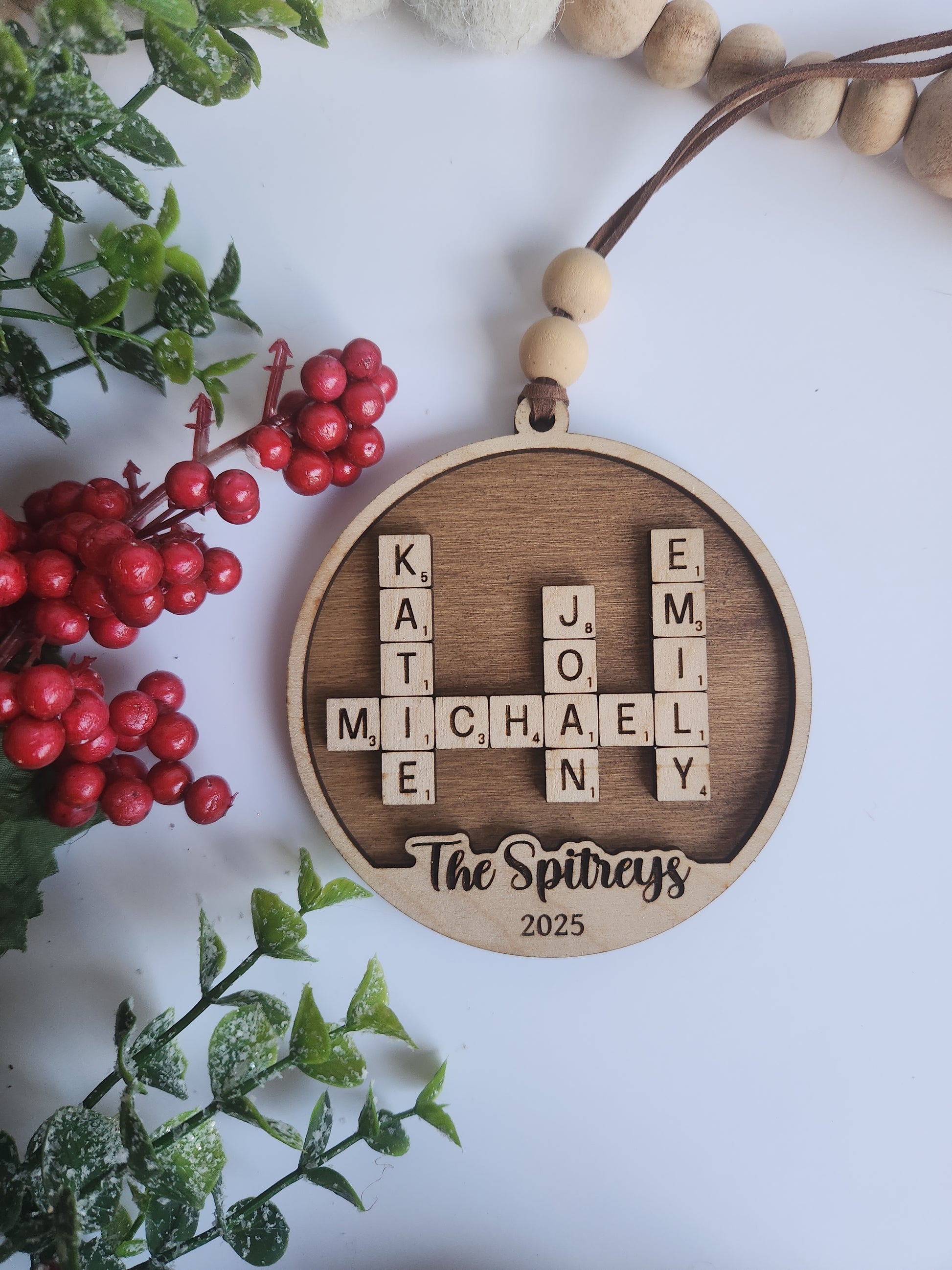 Custom Personalized Crossword Ornament – Family Name Christmas Ornament (Up to 10 Names)